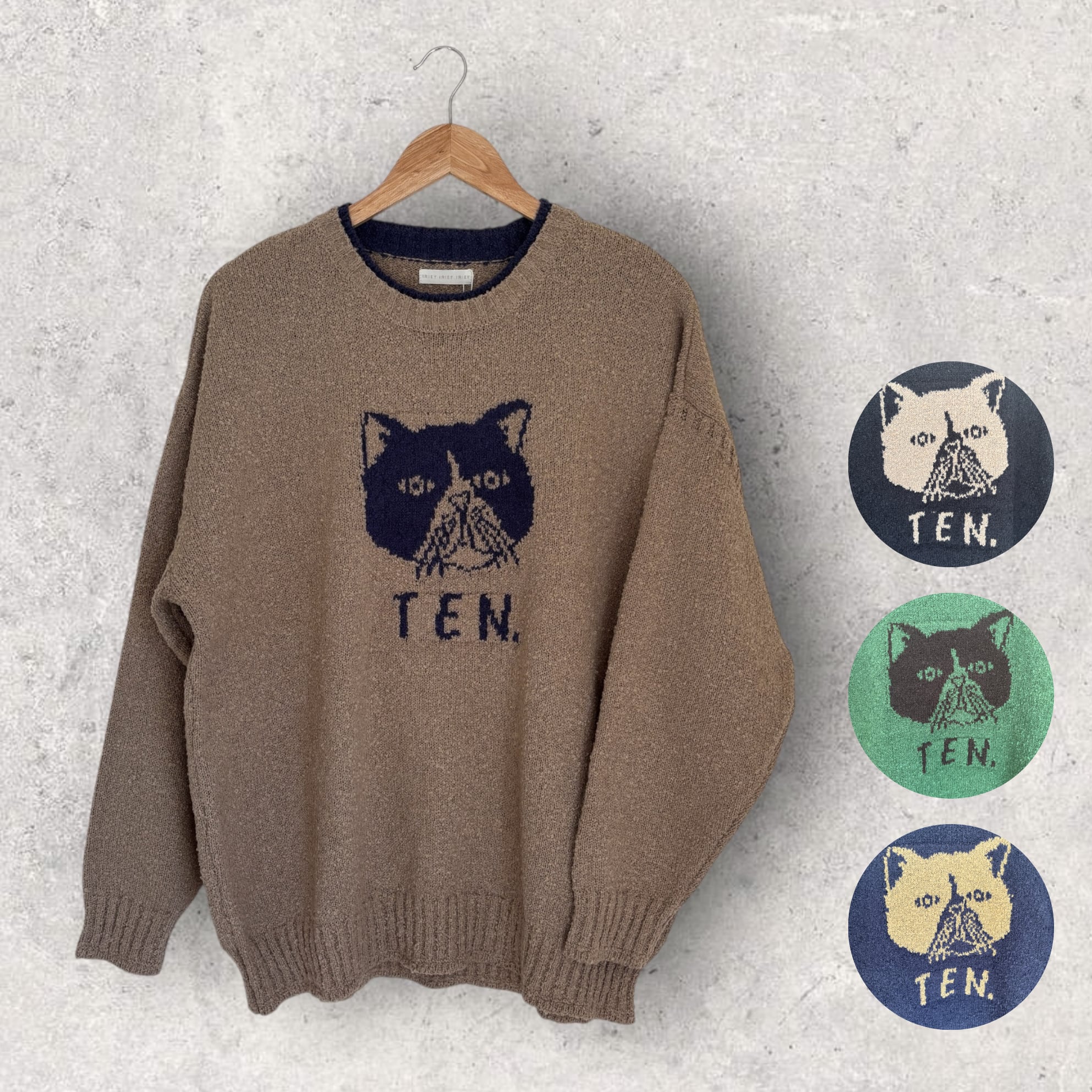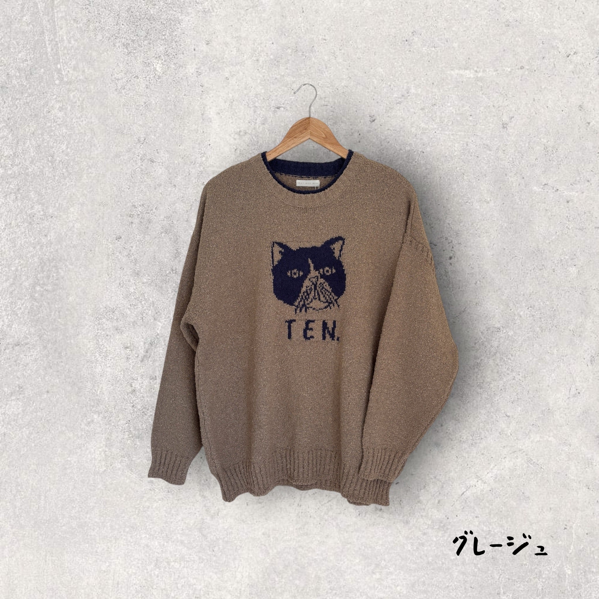 【iriey】ネコ柄 ブークレニット プルオーバー
