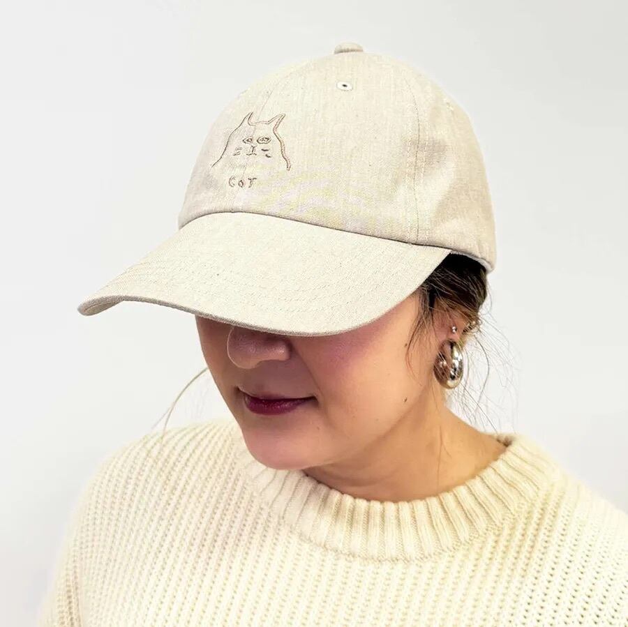 【BASIQUENTI】リネンハンドライティングアニマルキャップ Linen Hand Writing Animal Cap