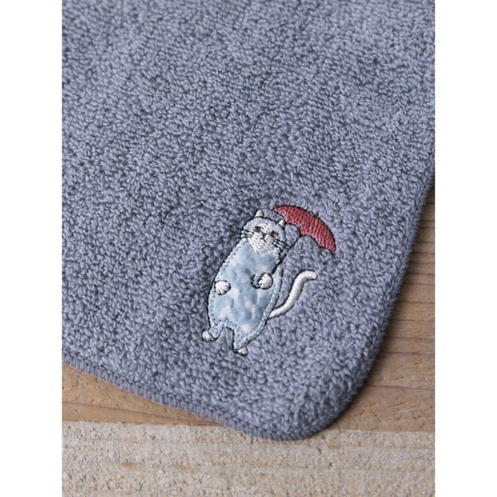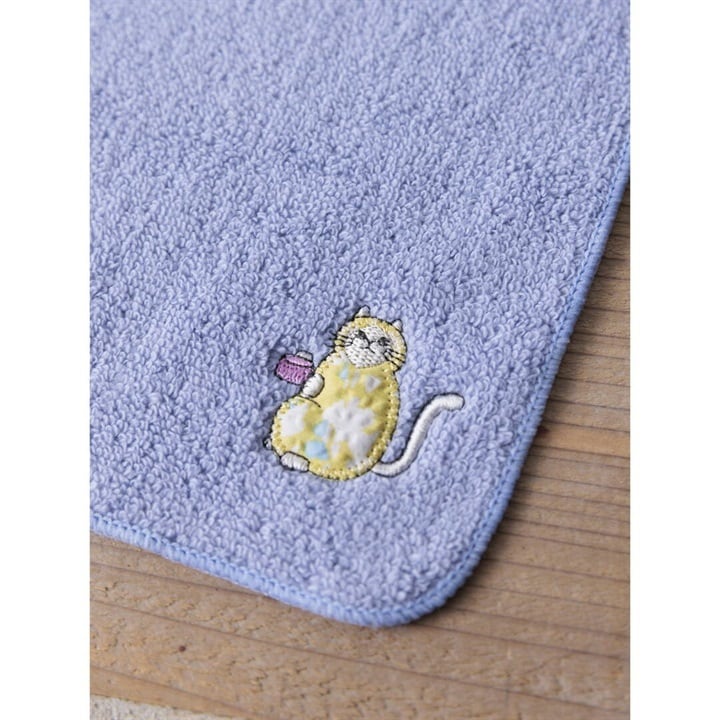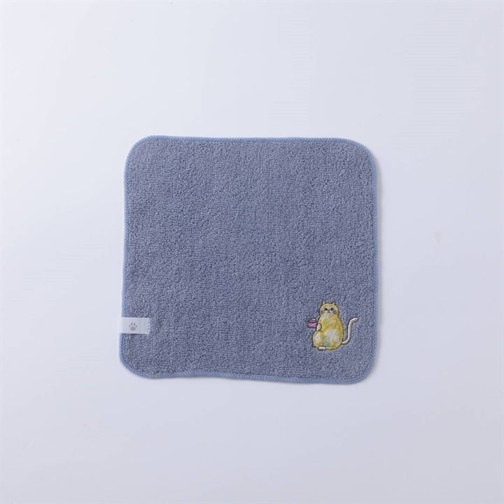【COCOWALK】無撚糸パイルアップリケ刺繍ハンカチ 日曜日のネコ