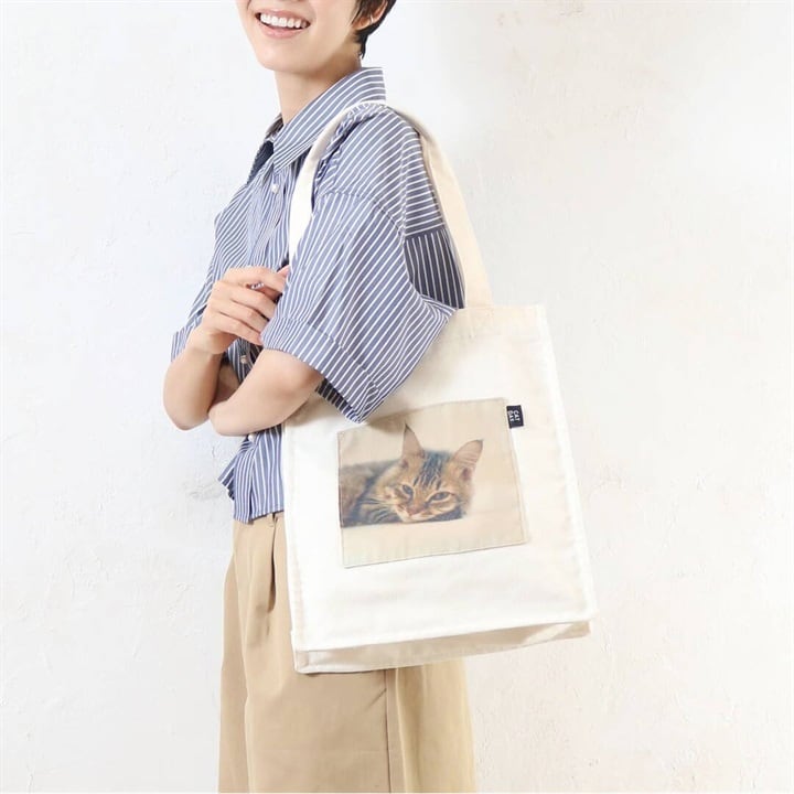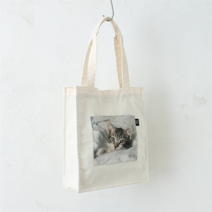 かわいいネコのフォトデザインが施されたトートバッグ。