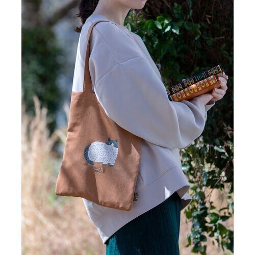 風合いのある生地に猫さんがプリントされた、A4サイズのトートバッグ。